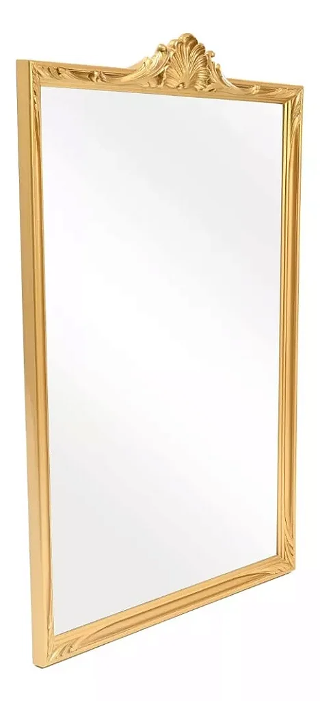 Espelho com moldura sofisticada, disponível em dourado e preto para diferentes preferências de estilo.