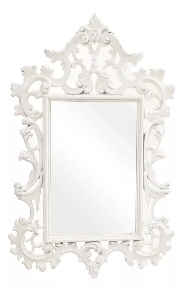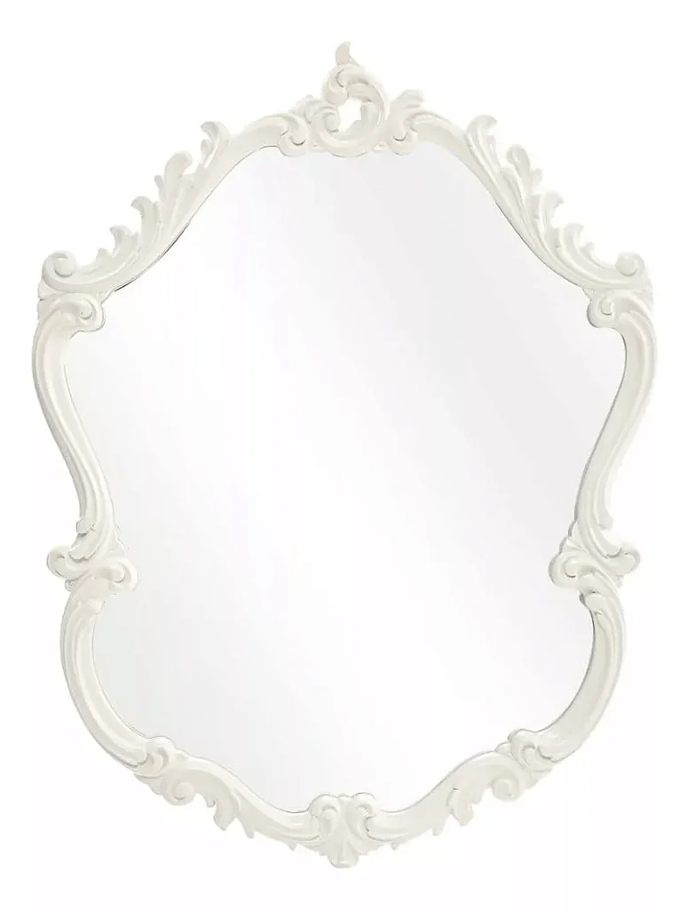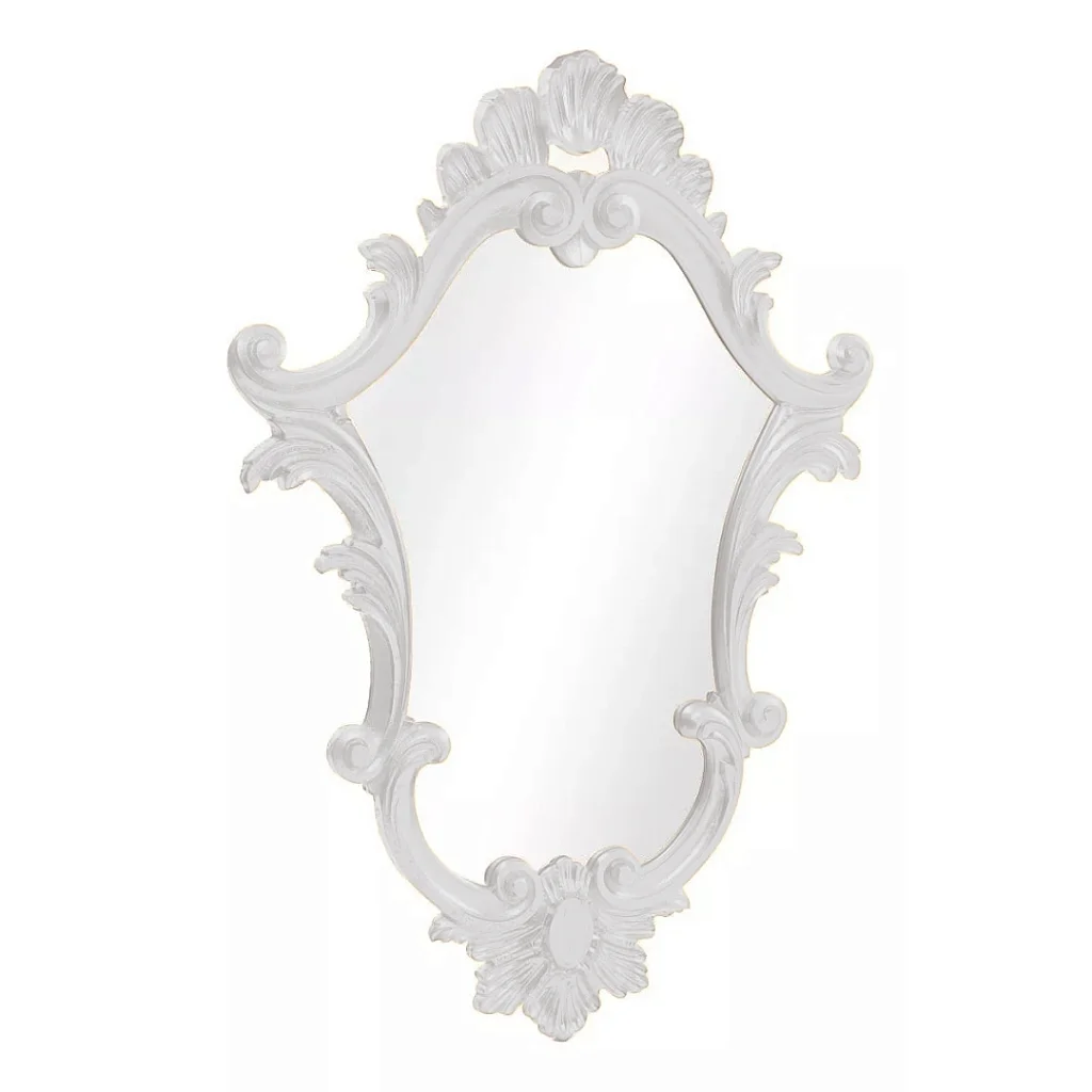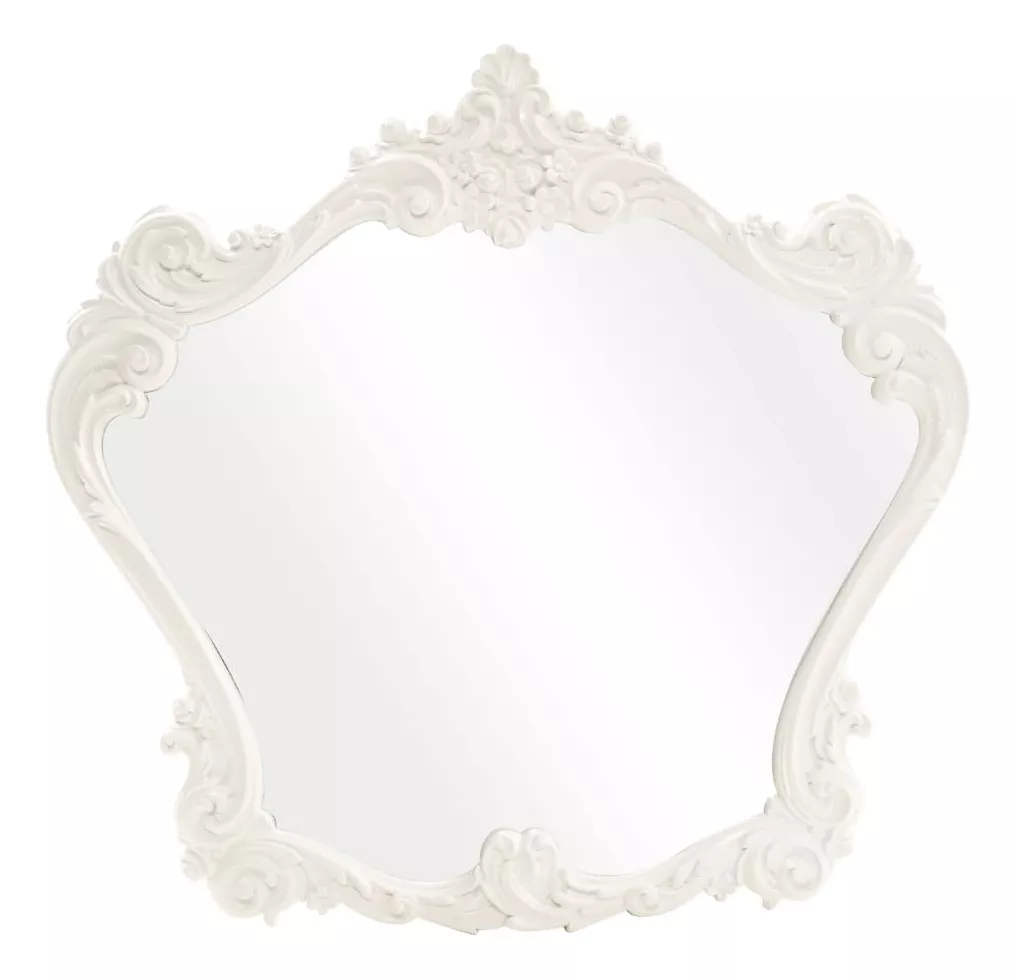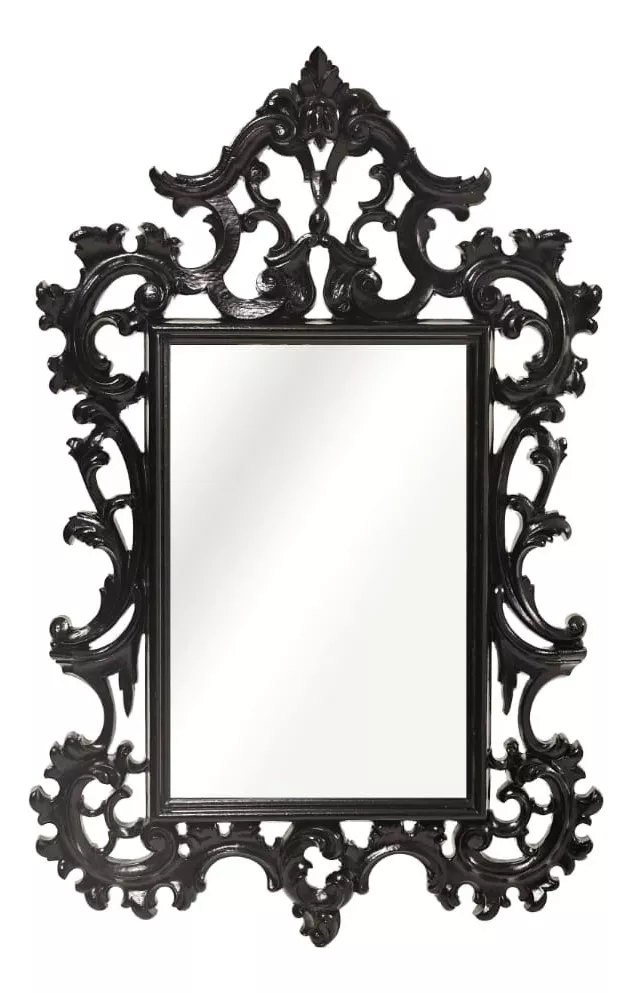 Espelho decorativo com moldura clássica, disponível em branco e preto para diferentes estilos de decoração.