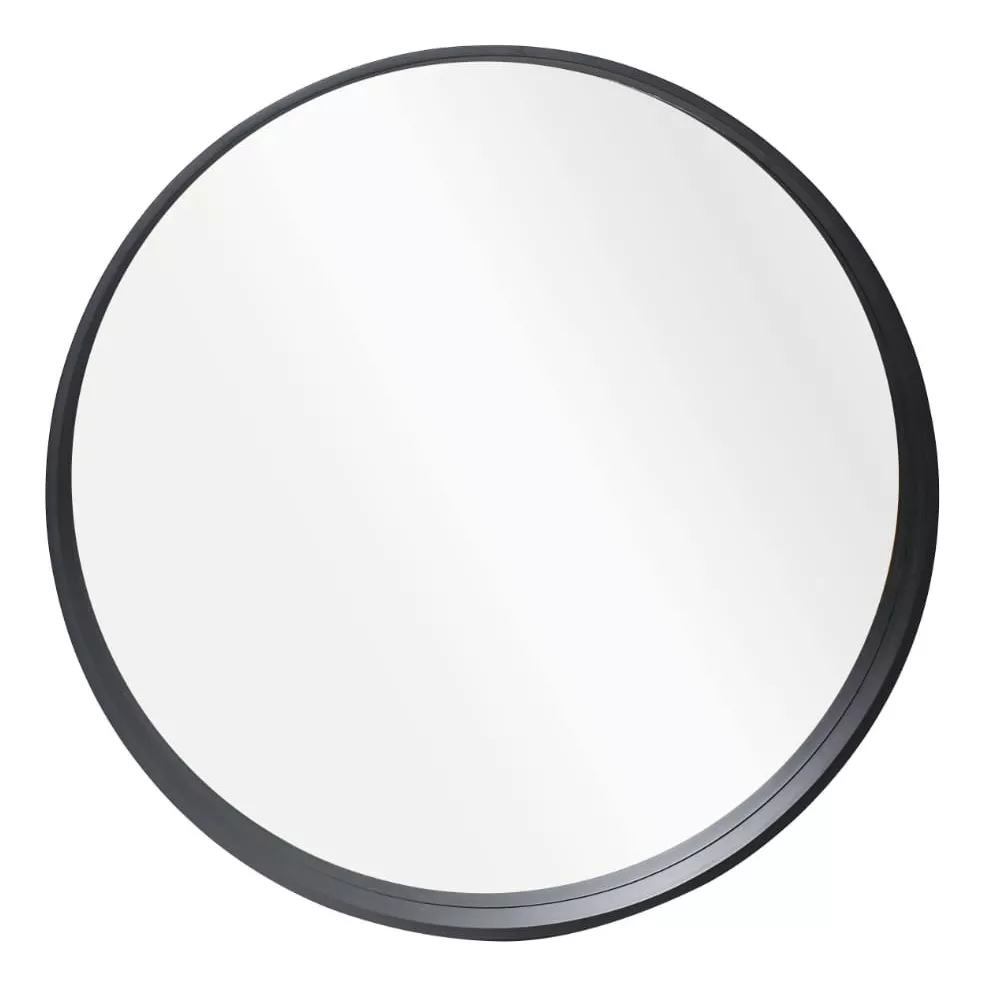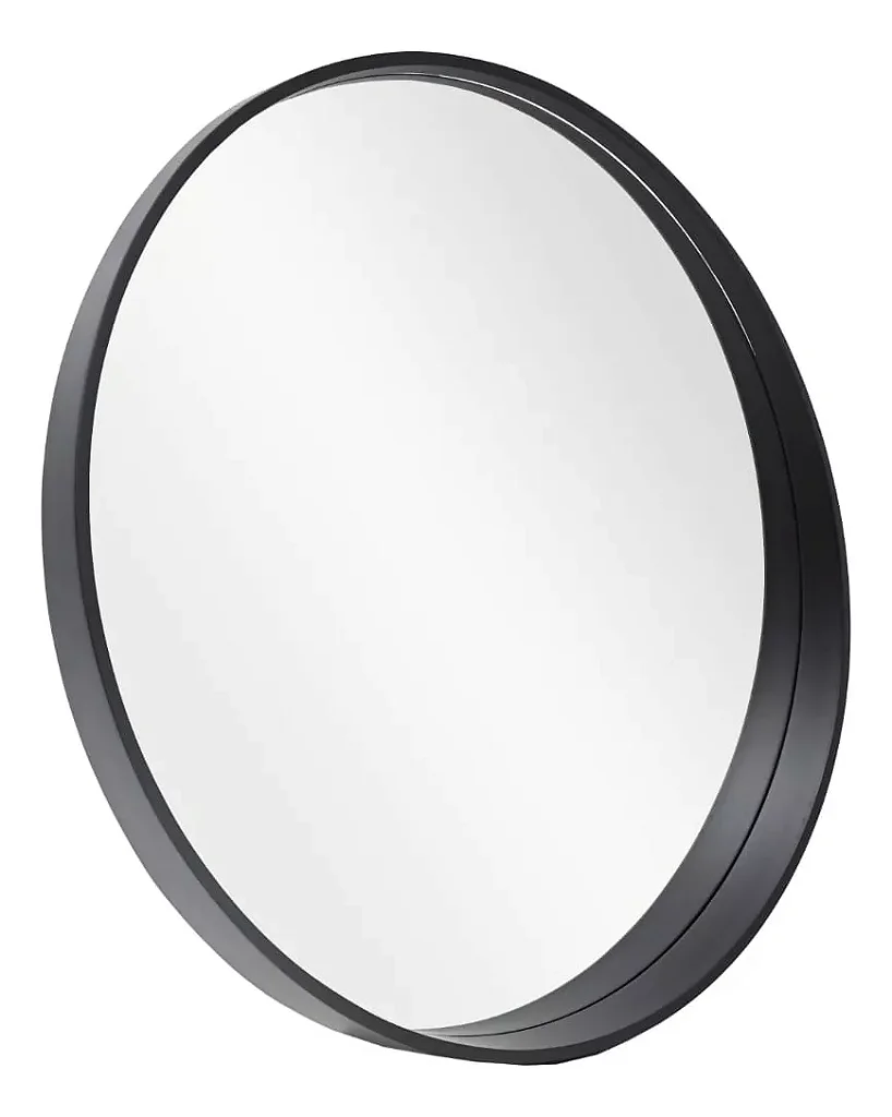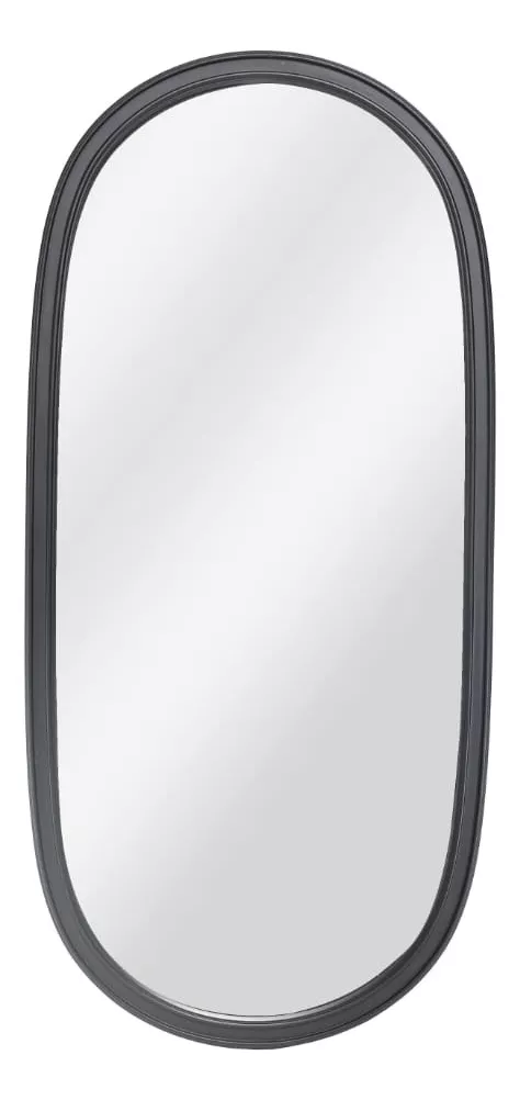 Espelho com design minimalista e moderno, com acabamento em preto para ambientes contemporâneos.